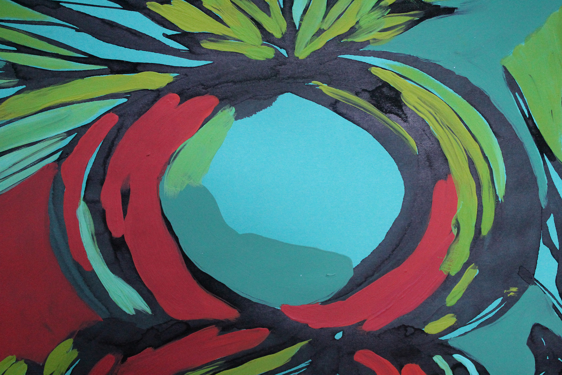 Tinta china y acrílico sobre papel de color. Lámina 50 x 70 cm.
