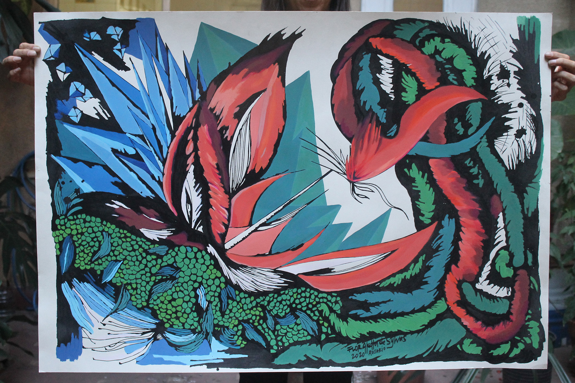 Tinta china y acrílico sobre papel. Lámina 100 x 70 cm.