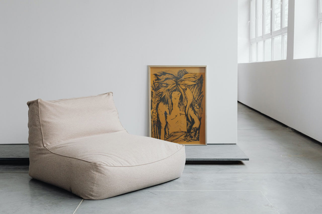 Tinta china y acrílico sobre papel especial. Marco Caja. Chato profundo de madera. 70 x 100 cm. Enmarcado. Lámina.