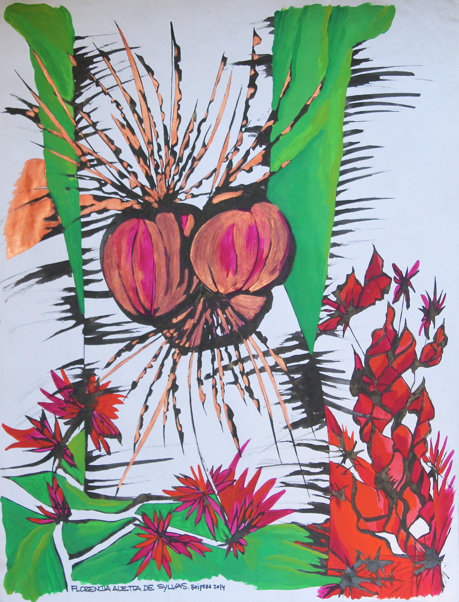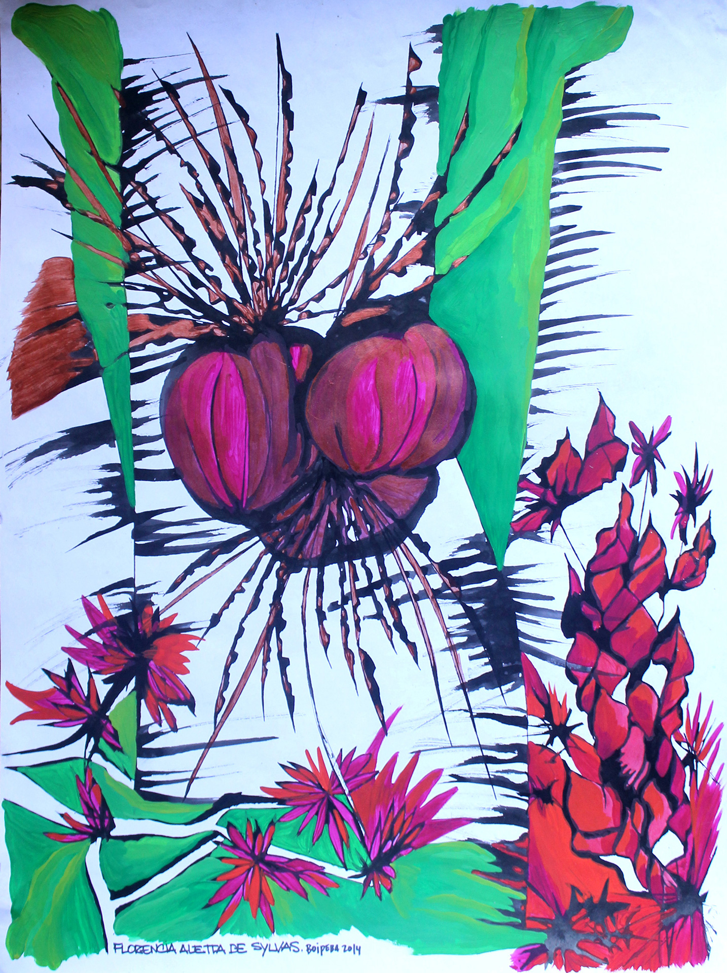 Tinta china y acrílico sobre papel. Lámina 50 x 70 cm.