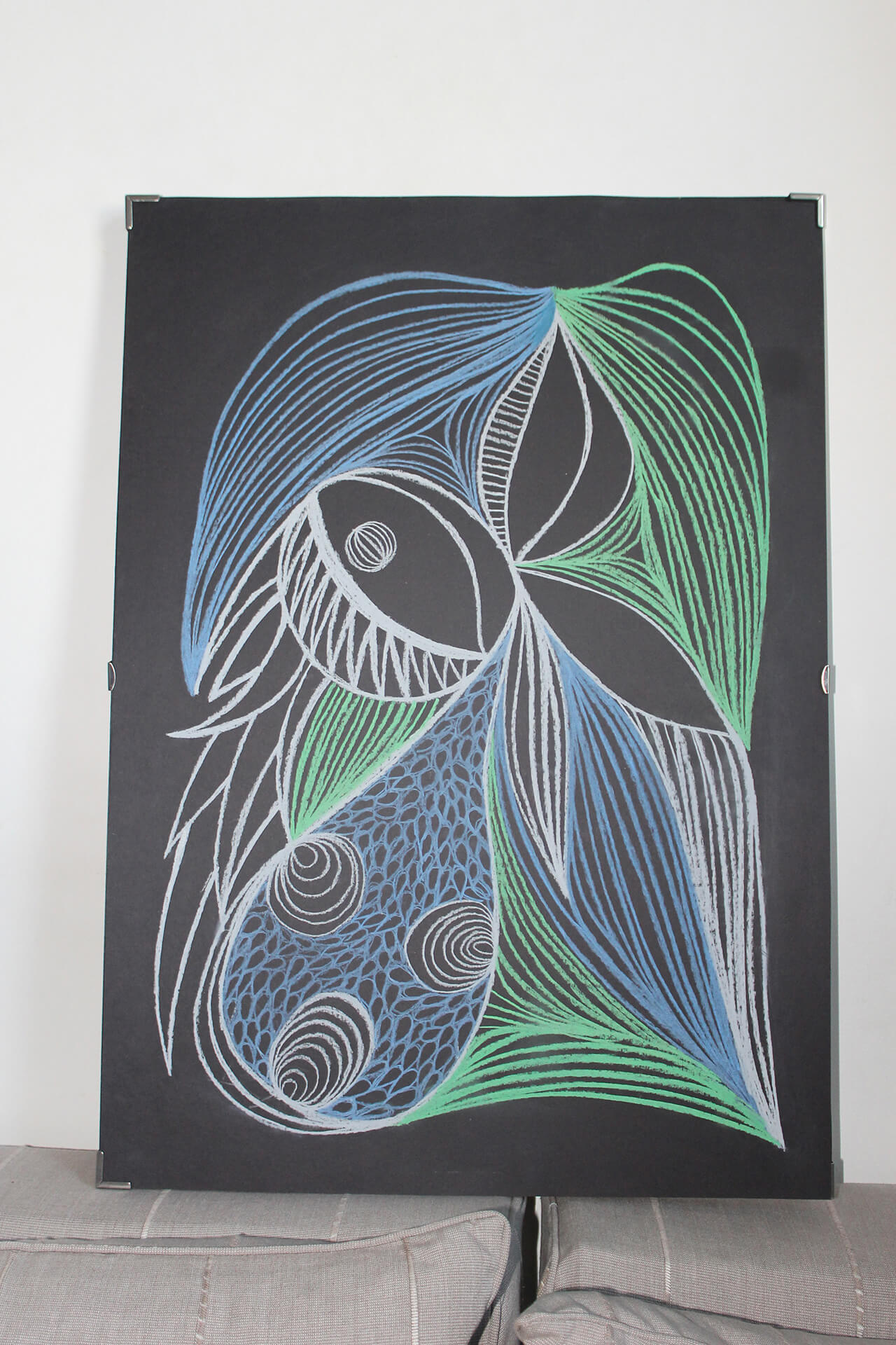 Pastel tiza sobre papel negro. 50 X 70 cm. Sin Marco. Lámina.
